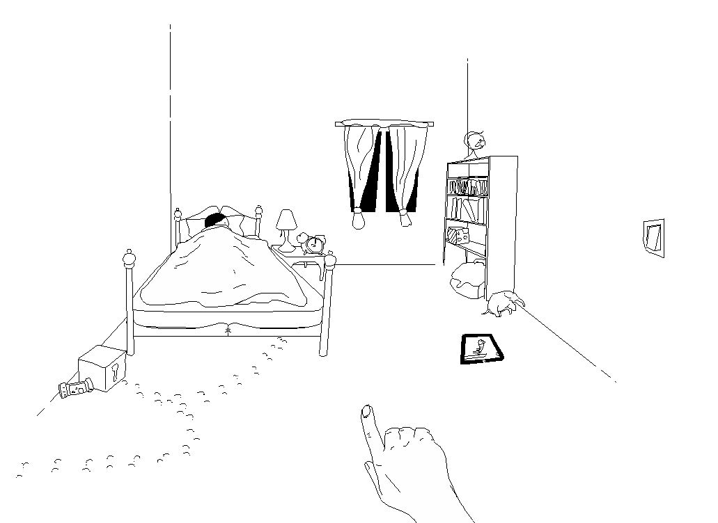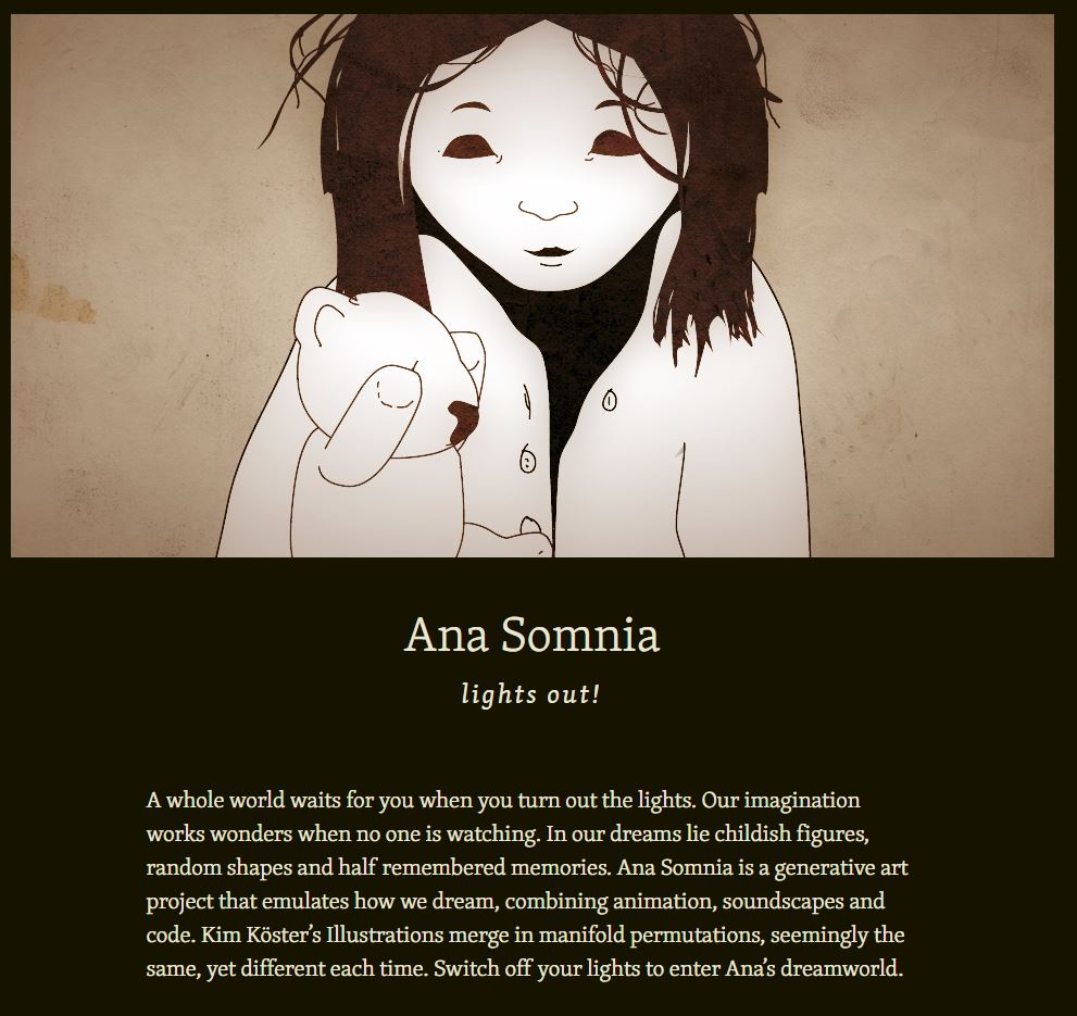 THIS is a WEIRD website! At first, the Doctor was stumped about what to do. A strange soundtrack plays while something is loaded, a counter showing progress for several seconds. And then...well, then we see Ana getting ready for bed, and a long (hairy) forearm menacingly pointing from the supposed door in the wall opposite the bed. Now what? Well, that is something you'll have to find out...
